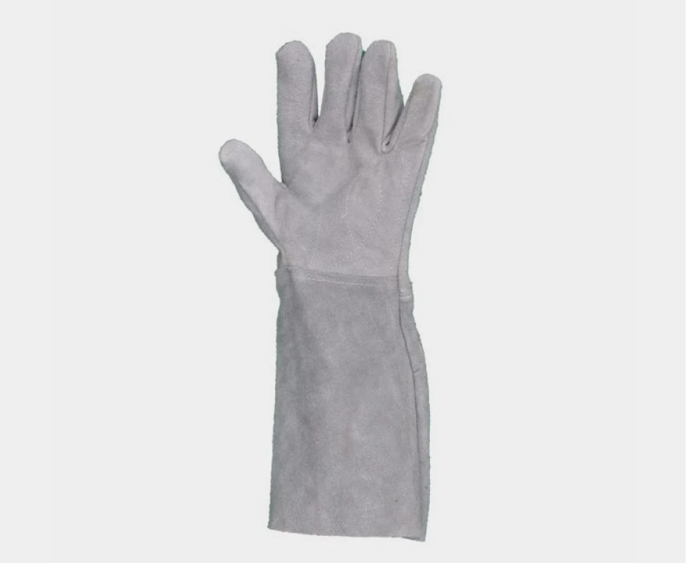 A luva de raspa com punho de 20cm foi desenvolvida para oferecer proteção máxima às mãos e ao antebraço, sendo indicada para solda e trabalhos pesados em ambientes de alto risco.