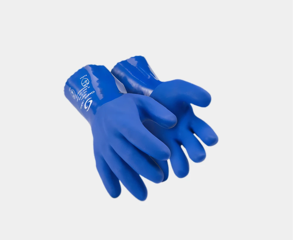 Confeccionada em PVC de alta resistência, a Super PVC garante proteção eficaz contra produtos químicos, solventes, óleos e agentes abrasivos.